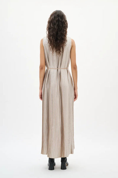 InWearin laskostetussa midimekossa on rento istuvuus, hihaton siluetti ja pyöreä pääntie, joka tarjoaa monipuolista tyyliä ja mukavuutta. Vyötärön nauha tuo yksityiskohdan, tehden siitä ihanteellisen sekä rentoihin että muodollisiin tilaisuuksiin.